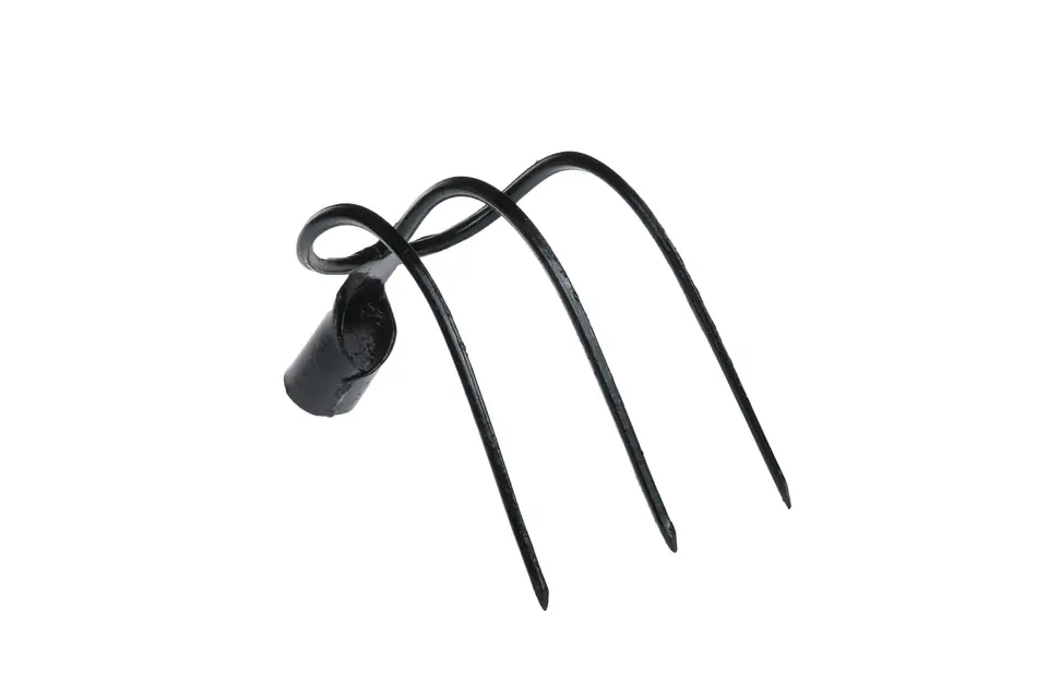 The hook is used to rake turf, manure or pull weed roots out of the ground