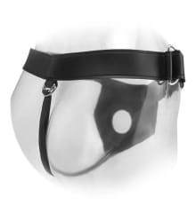 - Stretchy silicone O-ring that accommodates a wide array of strap-on dildos