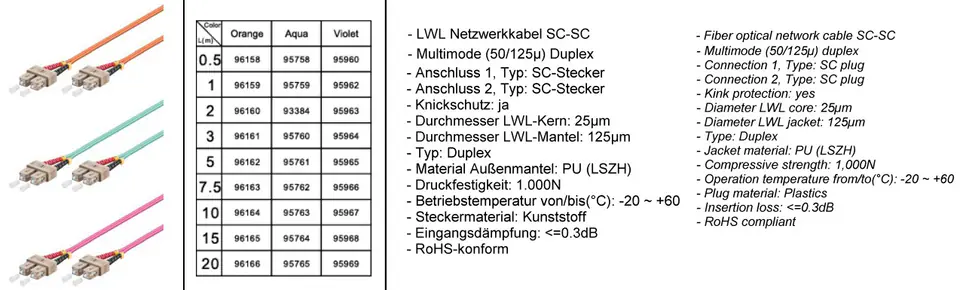 Fiber Optic Patch Cord LWL LC-LC OM3 DUPLEX 3m