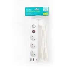 FIESTA EXTENSION CORD 1,5M 10A 3 SOCKET 3 USB TYPE E FRENCH WHITE