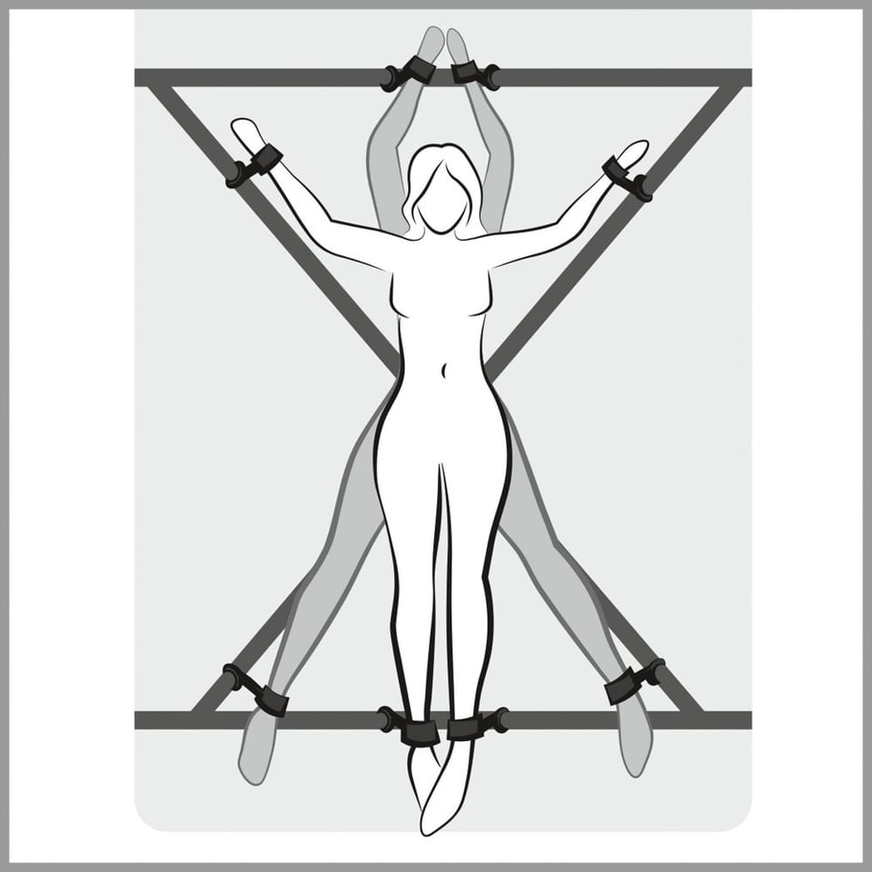 Zestaw więzów, mocowany do łóżka. Pozwala na rozpięcie nóg i rąk w pozycji horyzontalnej lub wertykalnej. Wariacja w stylu deluxe na temat klasycznego systemu rozpinania osoby zdominowanej. Daje możliwość rozciągnięcia w pionie lub pełnego otwarcia i obnażenia miejsc intymnych. Regulowane pasy dają duże pole do Maniewo i pozwalają na pełne dopasowanie do waszych preferencji. Osoba leżąca może być też na brzuchu, co daje jeszcze większe możliwości zabawy.