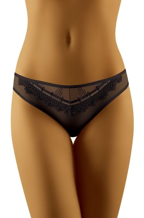 Cute briefs made of double, slightly translucent tulle. The front is impressively accentuated with stylish embroidery and ribbon. Composition: 83% polyamide, 17% elastane.