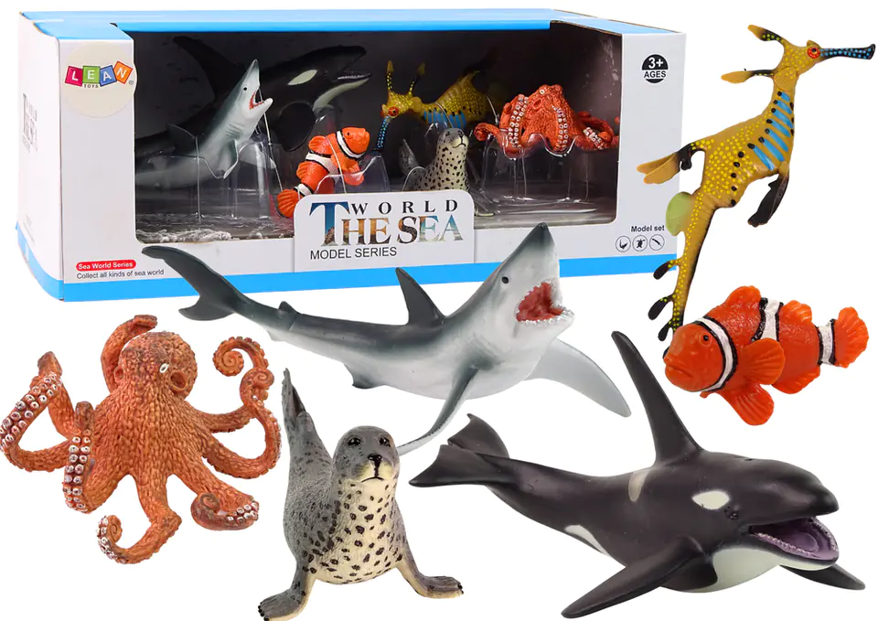 The figures give a true, realistic look - all elements have been cast from a detailed form, thanks to which the most important, characteristic elements of a given species have been preserved in their construction Packaging with a sea panorama is perfect for a gift.