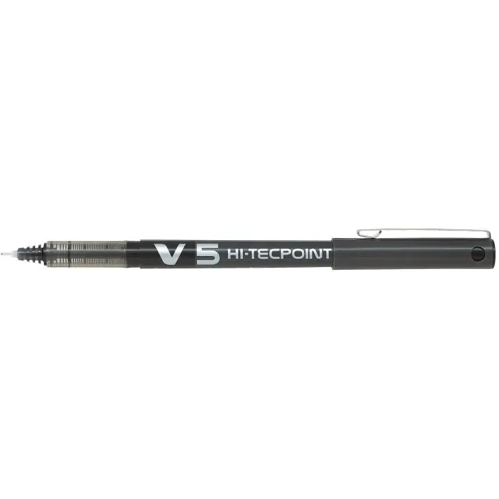 Ball tube with ink-colored housing and a window that allows you to control its consumption. It has a secure valve cap with a metal clip. The ability to write on any type of paper. Recommended for left-handed people. The V5 fineliner has a needle tip that makes the writing line very precise. Writing line thickness: 0.30 mm, writing line length: 1700 m. It comes in black, red, blue, zielony._V5 is produced based on V-System technology, which includes three technological pillars:_INK WRITING - When excess ink escapes from the tank during writing, it is stored in a specially constructed tip with built-in micro wings. This ensures that the amount of ink flowing into the tip is always constant. The thickness of the written line does not change, writes to the last kropli._Hi-Tecpoint _ is a unique tip made of stainless steel with the use of 3 symmetrical recesses to support and support the ball. Thanks to the use of Hi-Tecpoint, the ball rotates very slightly during typing and ynnie._ATT the system _skuwka skuwce_. Inside the outer cap there is a smaller one, which tightly protects the writing tip. In addition, if swallowed, it allows oddychanie._Opakowanie 16 + 4 pcs. free_
