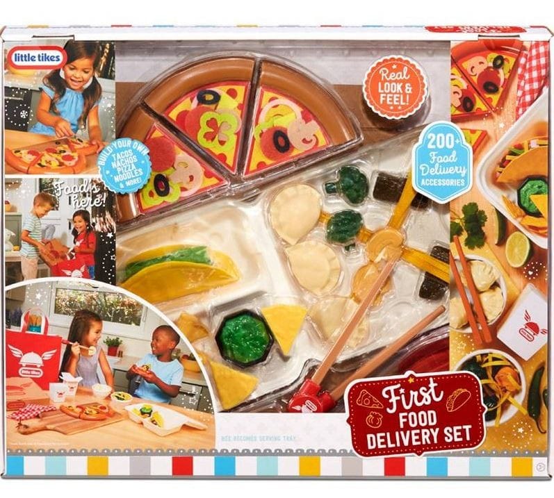 The Little Tikes First Food Delivery set will keep children occupied for hours of fun in preparing, serving or delivering delicacies from around the world. Little ones will learn about the most popular Italian, Mexican and Asian dishes. They will celebrate Taco Tuesday with tortillas, various felt toppings and guacamole. They will also compose the best Italian pizza and practice eating pasta or dumplings using chopsticks! Lots of culinary fun and learning about culinary delights from different parts of the world! Kids can also take on the role of restaurant caterer and customer taking an order. The set includes more than 200 realistic accessories such as pizza and toppings, pasta, vegetables, ravioli, guacamole cup, chips or tortilla. In addition, the set includes serving utensils, chopsticks and boxes for packaging these delicacies to take away. Time for some tasty fun!