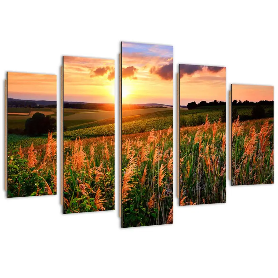 Five-part painting Deco Panel, Sunset over the meadow Size 100x70