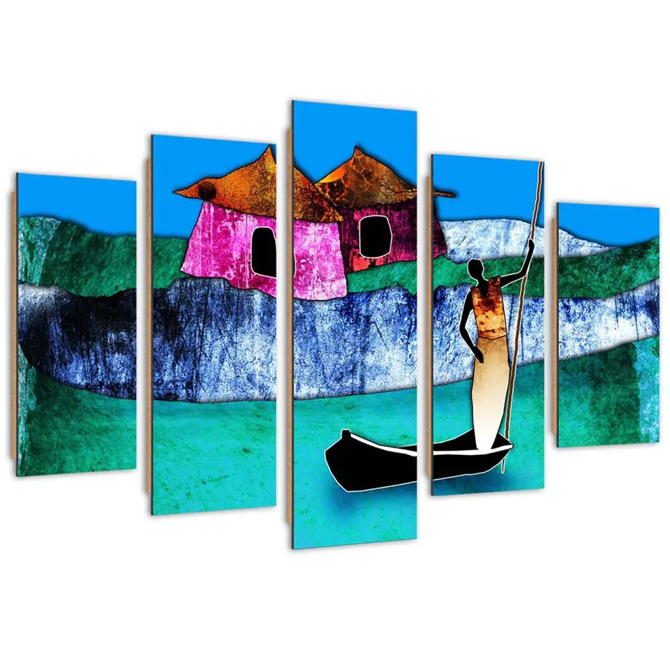 Five-part painting Deco Panel, Woman in a boat Size 200x100