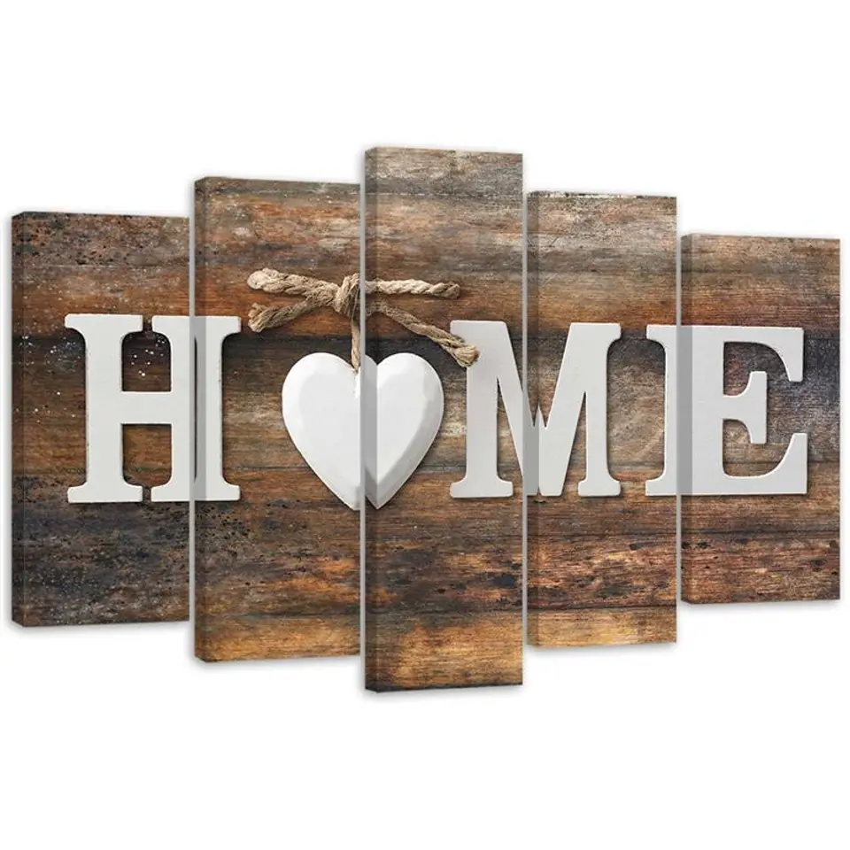 Five-part painting on canvas, Home inscription on an old board in vintage climate Size 100x70