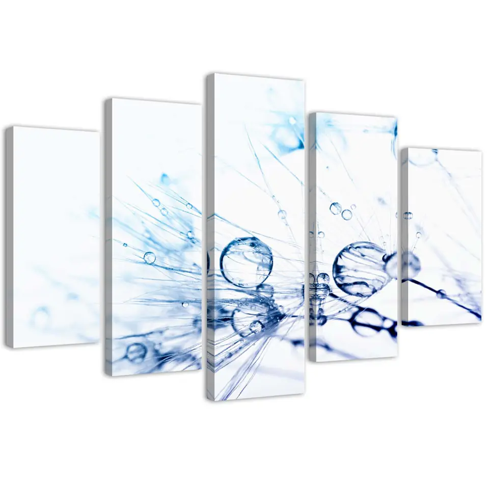 Five-part painting on canvas, Water drops on a dandelion Size 200x100