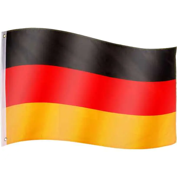 Flag of Germany 120x80cm Flag of Germany. It fits the mast, which is available in the offer. Specification: dimensions: 120x80 cm, assembly: two metal eyelets, double seam on the edge, colors of Germany, screen printing with high color saturation, material: polyester 75d, fits the mast available in the offer.