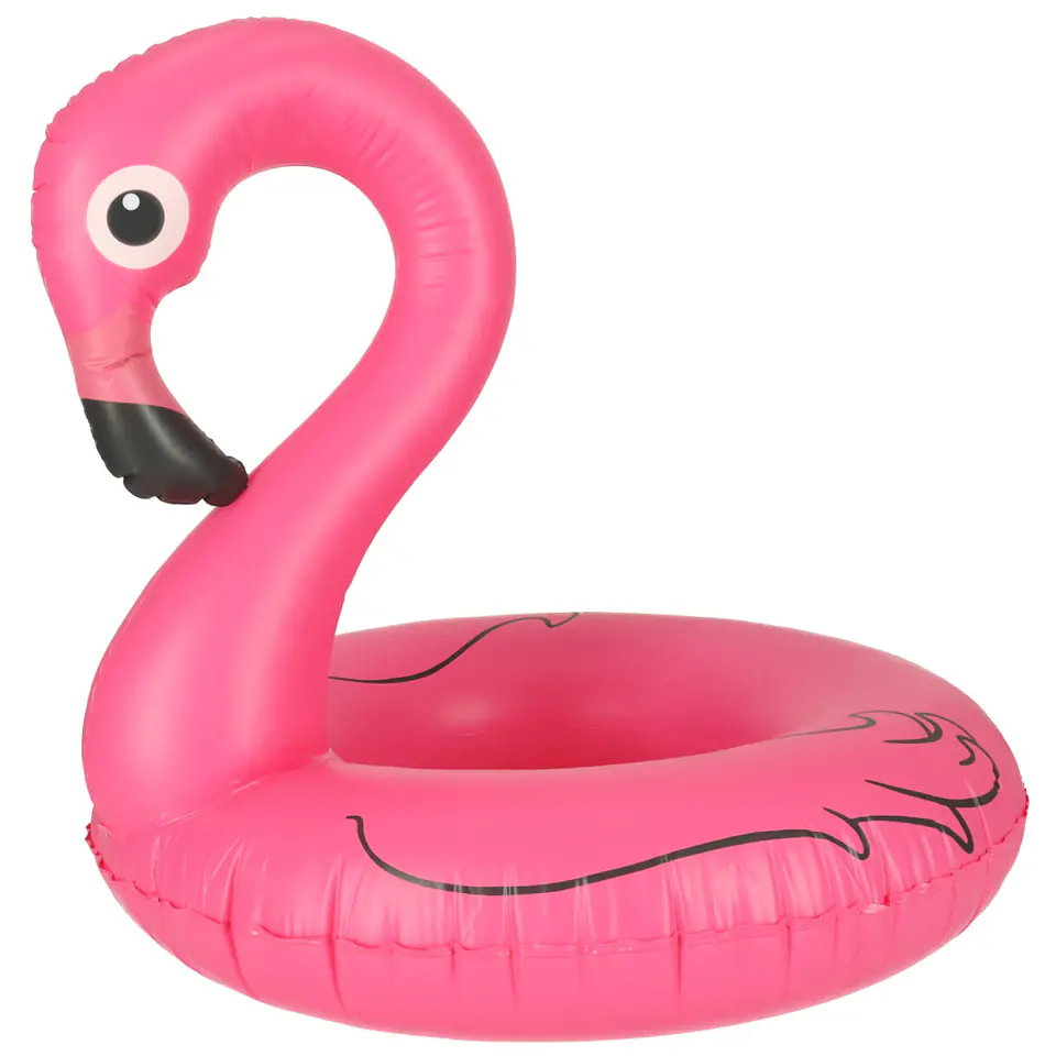 Colorful flamingo shaped inflatable wheel, made of high quality PVC plastic, guaranteeing durability.