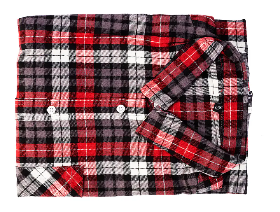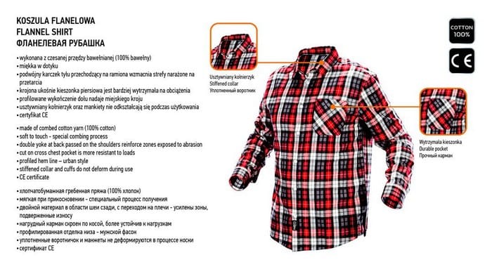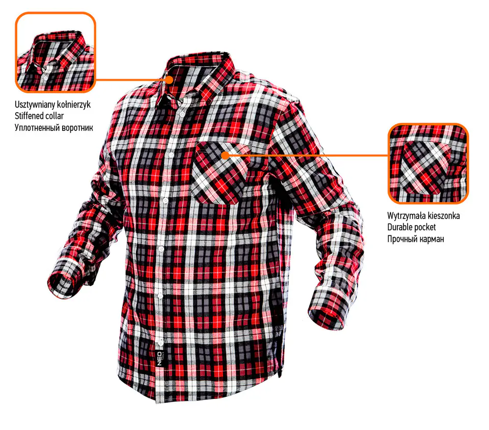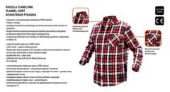 Flannel shirt, red-grey-white check woven from previously dyed yarn, 100% cotton, 180 g/m2 size XL, CE certificate