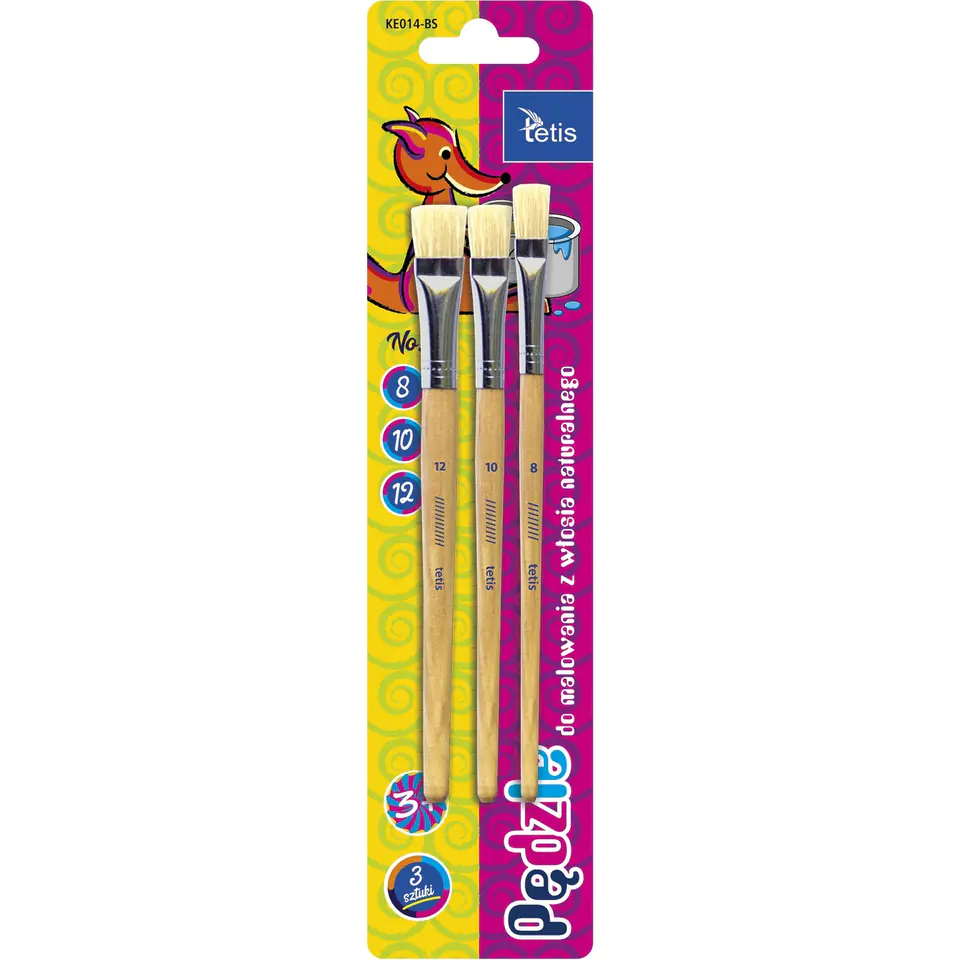 Brushes for painting from natural, stiff bristles. Flat shape. Birch wood handle.