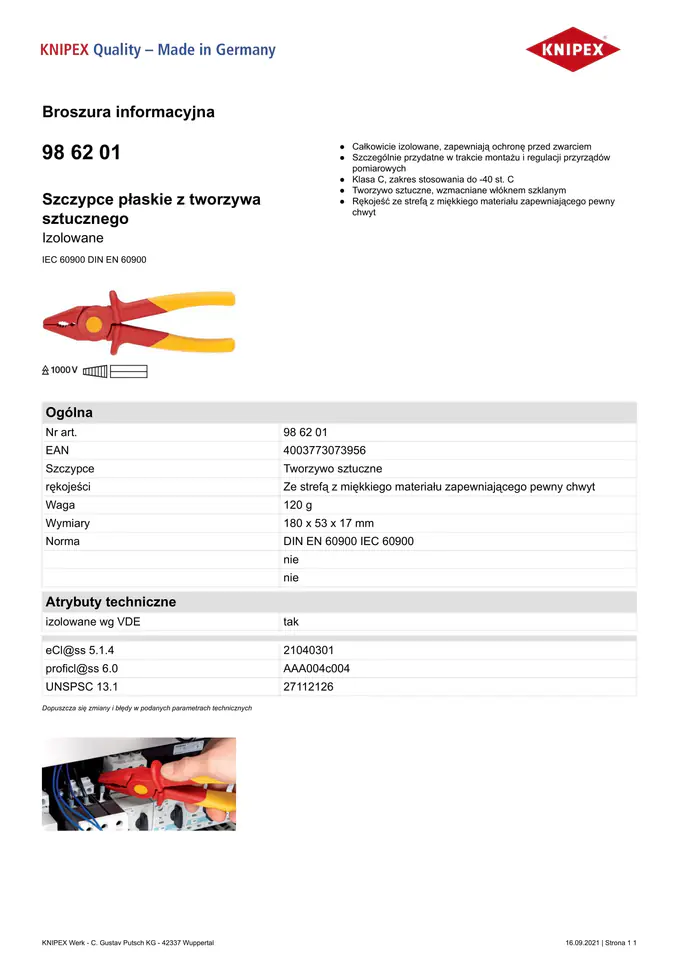 FLAT PLASTIC PLIERS INSULATED 180MM