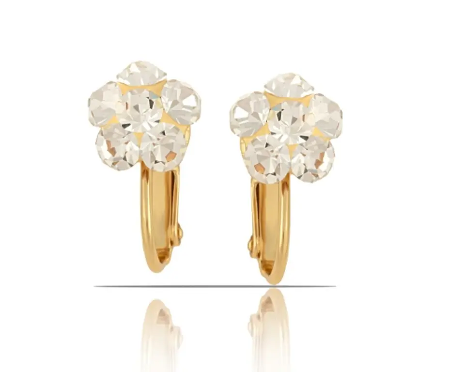 Clips are a great solution for women who do not wear earrings. We have many designs and sizes! Clips flower with Swarovsky crystals. Length 1.7cm, width 1.1cm. Gold-plated clips. Gold-plated earrings.