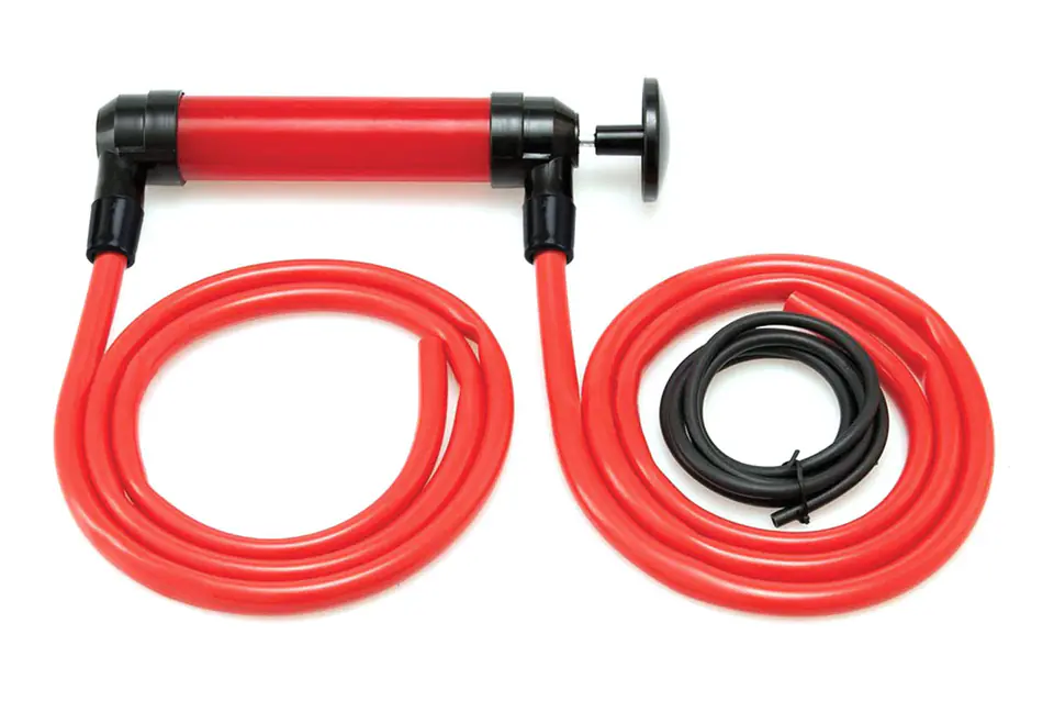 Fluid pumping: Connect the fluid hoses to the pump tips. On the connection, slide the elements (A). Place the hose connected to the entrance in the tank from which you want to pump out the liquid, and place the second hose in the filled tank. Then pump the piston until the liquid is pumped. IMPORTANT: After pumping gasoline, diesel, used oil or other flammable liquids, take special care and thoroughly clean the pump and hoses. Air pumping: Attach a hose to pump air to the pump output. Connect the end of the hose to the inflatable workpiece with the appropriate tip and start pumping. Pumping out used oil: To pump the oil out of the engine or gearbox into the pump input, insert the element (B), then connect the oil removal hose to it and protect it with the element (A). A hose should be connected to the pump output and the element (A) should be inserted. A thin hose should be placed in the engine, and the outlet hose in a container for used oil.