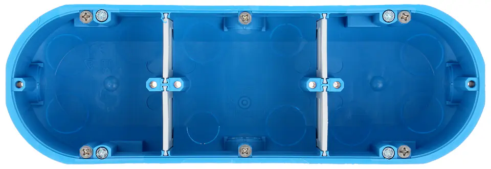 | Flush-mounted stiffened construction for hollow walls flammability rating: 960 °c class v0 3 x 4 attachment points 6 mounting screws, 4 special screws with hooks for wall mounting, 4 cable partitions - included: | Selected features: |