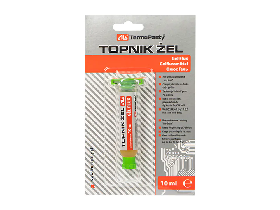 Flux Gel is a thickened rosin flux of RMA class designed for SMT assembly and repairs. Flux Gel can be applied through a sieve, stencil or from a syringe. Activators used for the production of flux allow to leave its remnants after the soldering process on the package (unless the production process takes into account the washing phase)