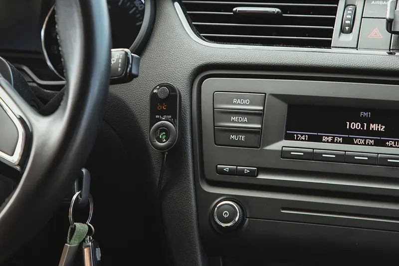 The transmitter should be connected in the car to a USB socket with a constant voltage of 5V, and then set the same FM frequency on both the device and the car radio. This will allow you to transfer audio from external devices (e.g. a phone) to the car audio system.