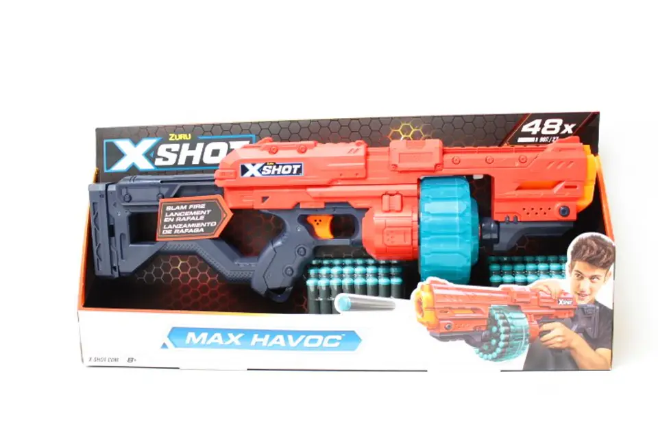 - The set includes the X-Shot Excel Max Havoc launcher and 48 foam X-Shot darts that use air pocket technology to fly even further and hit the target better!