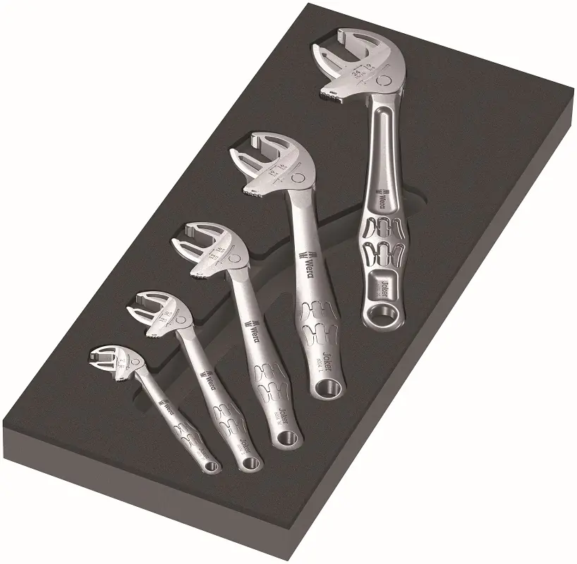 Tool Rebel equipped with 5 self-adjusting flat wrenches Wera 6004 Joker.