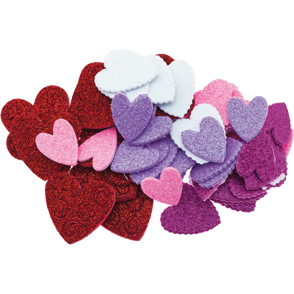 Foam stickers brocade heart, mix. colors and sizes, the package contains 64 pieces.