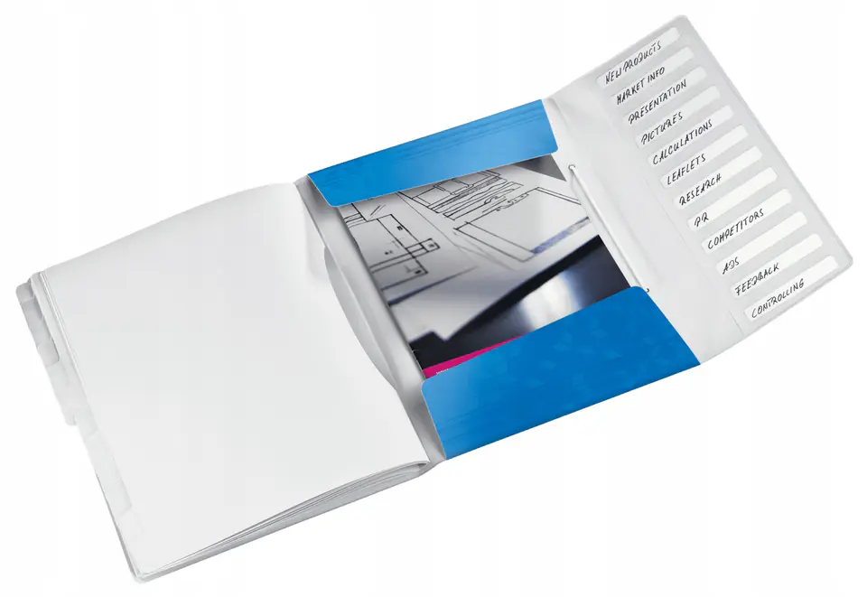 High quality filing folder made of lightweight polypropylene, in vivid WOW colours, with a two-colour finish. Perfect for sorting and organizing documents in the office, at home, and on the go.