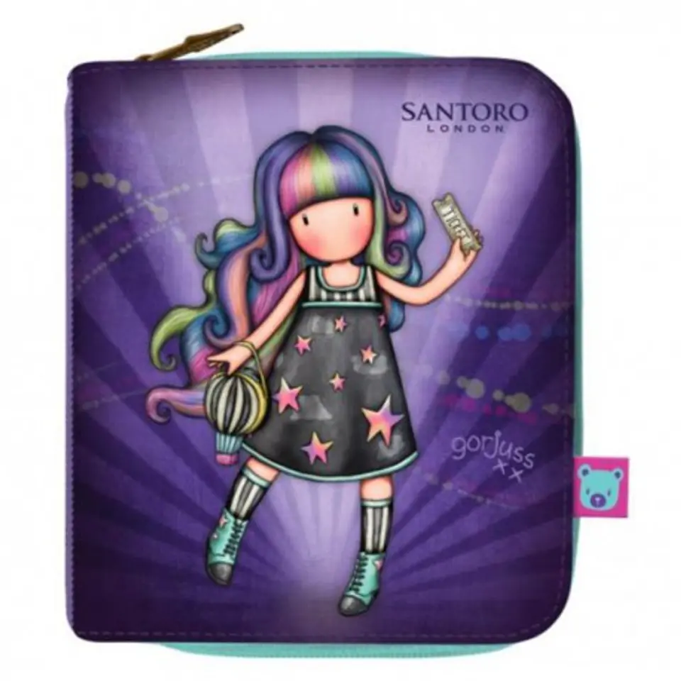 Foldable Wallet - Gorjuss - Up and Away The fantastic Up and Away series is decorated with Gorjuss girl's graphics, decorated in deep purple colors. On the back fireworks, colorful garlands, cotton candy - everything that we find in a cheerful amusement park. Fashionable and practical wallet, perfect for safe storage of coins, cards and tickets. Includes a lockable coin pocket. After unfolding you will find a transparent pocket for a photo and a place for cards. From the top, a place to store banknotes. Zippered wallet. Decorated with the Santoro logo. Dimensions of the folded wallet: 10 cm x 12 cm 3 cm. A fun Fairground collection full of backpacks, accessories and stationery, which refers to the mysterious adventures experienced in the Amusement Park. There is no shortage of fireworks, carousels, barrels of laughter, swings and prizes won. Funny pompons, cute patterns or metal pendants will take us to the colorful world of Santoro, full of surprises. This is a collection that we will treasure for many years. Follow the girls, the heroines of series 4: Up & Away, Fireworks, Carusel and First Prize and discover an exciting collection full of wonderful treats! 483GJ30