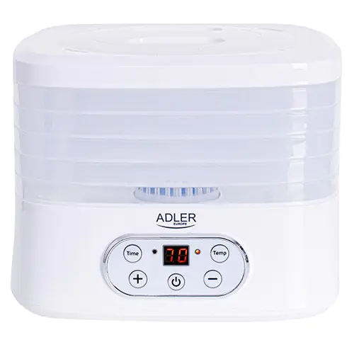 Practical mushroom, herb and food dryer with 550 watts of power. It can be used to dry mushrooms, vegetables, fruit and herbs, so they are easier to store and do not spoil. The dryer runs quietly and does not interfere with household chores. The large sieves allow a considerable amount of small produce to be placed. At the same time, the stacked layers determine that the appliance does not take up much space. Thanks to the two-stage temperature control, drying can take place at different intensities. For safety, the dryer is equipped with an overheating protection system that automatically switches off the appliance if necessary. The appliance is equipped with 5 trays evenly distributed for better air circulation. Using the control panel with LCD display located on the front of the machine, you can set the temperature range you are interested in as well as the running time of the dryer. The dehydrator is equipped with a timer so that you can set its operating time from 1 to 70 hours.