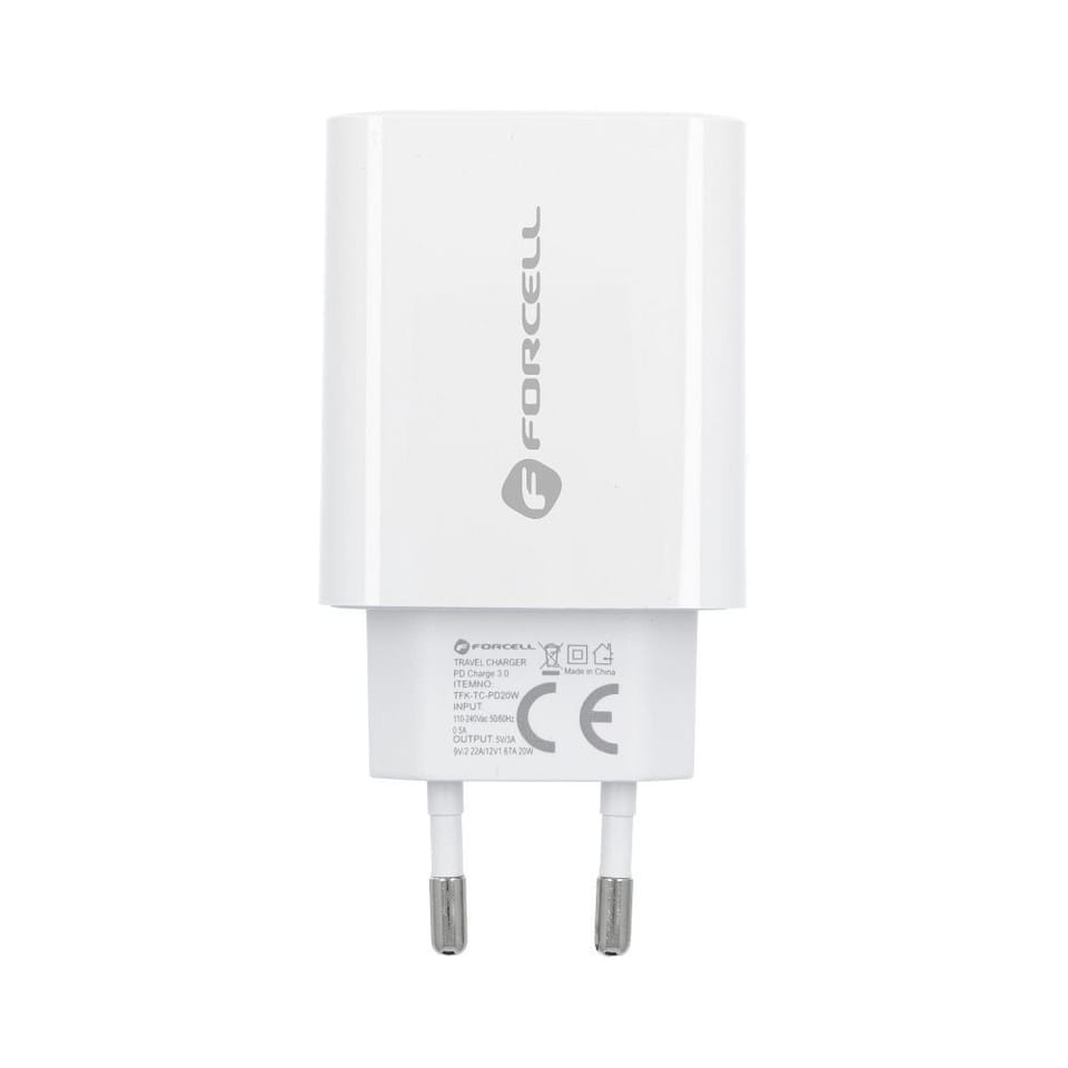 Forcell USB TYPC 3A 20W charger with PD and QC 4.0 charging function + detachable Lightning cable 1M