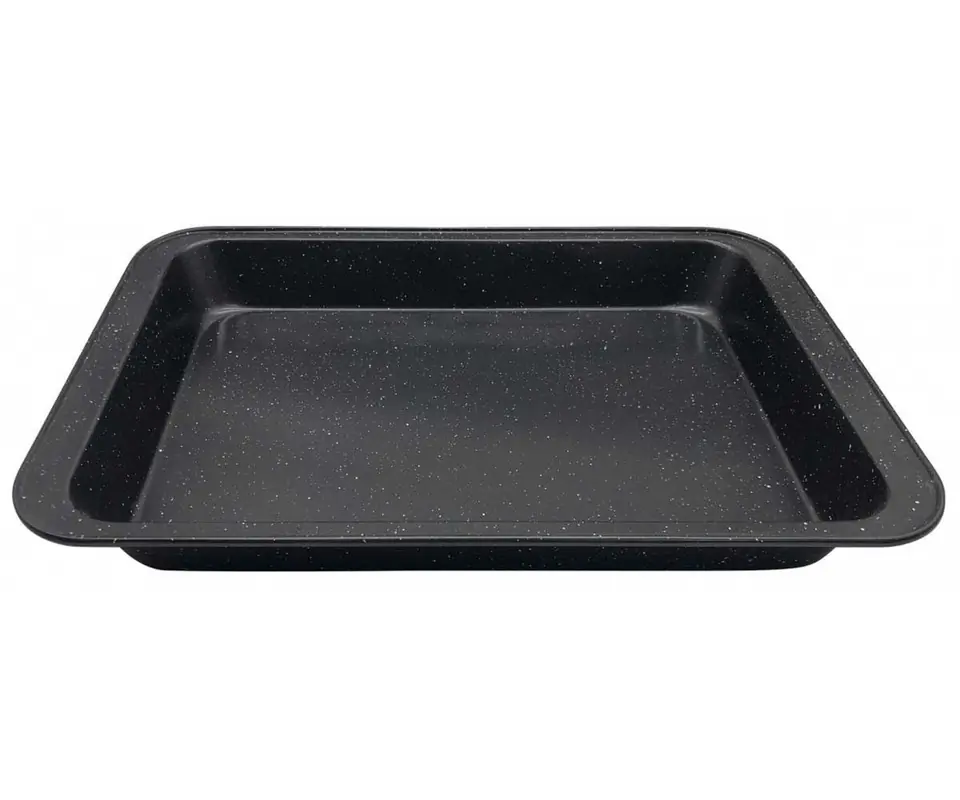 Rectangular form for baking dough 37x25x5cm from KINGHOFF. Made of steel sheet, covered with a non-stick marbled coating.