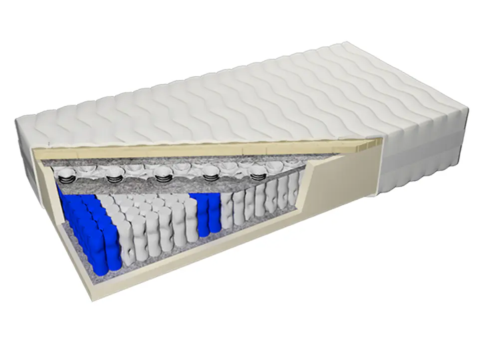 The innovative Doublepocket 7 zone form was created as a result of combining two rows of springs. In the mattress there is a classic Pocket 7 zone pocket form with a height of 12 cm, containing as many as 272 springs per m2 of mattress. It has a division into 7 hardness zones, which means that the spine will find the correct position in every sleeping position. These springs work pointwise, which is recommended especially for two-person mattresses. On the pocket form there is a thin, 3 cm stretchpocket form , which intensifies the effect of spot adjustment of the mattress to users. All vibrations and undulation of the mattress are eliminated, which is why it is extremely quiet and perfectly adapts to the figure. On the stretchpocket springs, an additional layer of FlexyLatex foam with a thickness of 4 cm was additionally used. Thanks to this, the mattress gains orthopedic properties. FlexyLatex foam is made from the combination of 20% natural rubber milk and 80% synthetic latex. It is a material with increased durability and a very high degree of elasticity. It has antibacterial and antifungal effects.