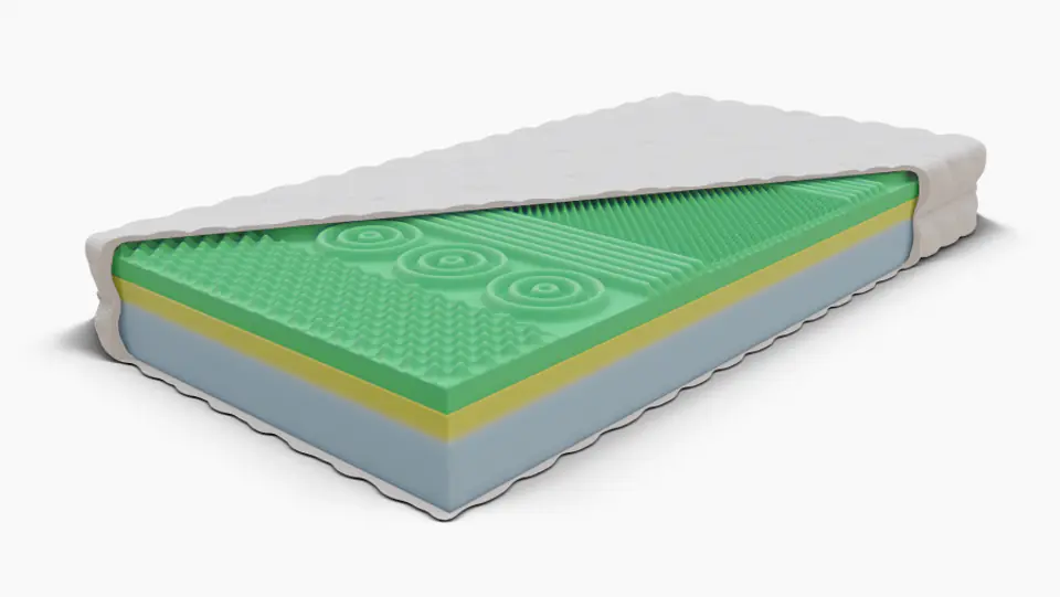 Asklepios is a three-layer mattress consisting of three innovative foams with different properties. The height of the mattress is 18.5cm.