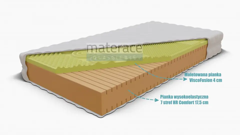 Tumnus is a mattress made of a combination of two high-quality foams: highly elastic HR Comfort (17.5 CM) and ViscoFusion memory foam (4 CM). The height of the mattress is 22.5cm.