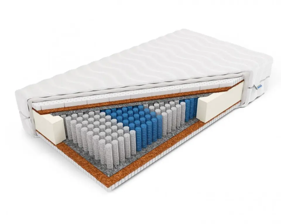 Horus is a hard, double-sided mattress that has a MultiPocket pocket form of 7 zones. A large number of small springs ensures a perfect fit of the mattress to the figure. Each of them works separately and independently of each other, thanks to which the mattress has point flexibility. Mattresses of this type are especially recommended for couples, because under each person it will fit individually. The surface of the mattress was made on both sides of latex coconut with a thickness of 1 cm. This provides stable support and makes the mattress very durable for deformation. Coconut makes the mattress have a free flow of air and does not accumulate moisture. Above the coconut layers is FlexyLatex foam. It gives a high degree of elasticity and elasticity. Thanks to the content of FlexyLatex foam, the mattress gains orthopedic properties. All components used in the mattress have anti-allergic properties, so the mattress is suitable for allergy sufferers.