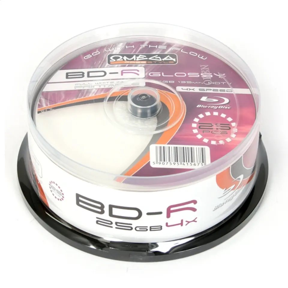 Recordable media type: BLU-RAY BD-R Capacity: 25GBRecording speed: 6xPackaging type:cake*25Note:The highest quality PROFESSIONAL inkjet printable Full Face - GLOSSY surfaceMedia code: CMC