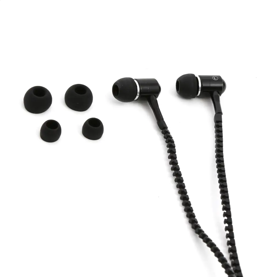 In-ear headphones with zipper cable shaped, with the possibility of zip and zip-off. Available in 5 colors. High quality sound, enhanced bass. Compatible with mobile phones, smartphones, tablets, and other MP3/MP4 Specification: - Speaker diameter: 10mm - Microphone - Impedance: 16 ohm - Sensitivity: 110 dB / m at 1KHz - Frequency response: 20 Hz - 20K Hz - Input Power: 3 mW - Cable length: 1.25 m - Connector: 3,5 mm - Color: Black