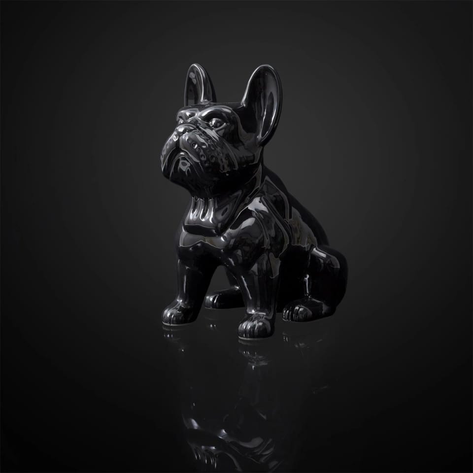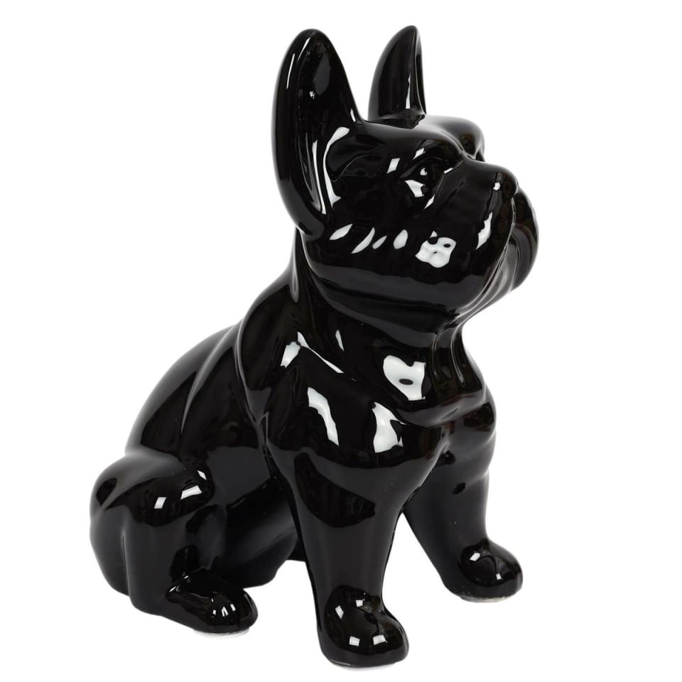 The figurine of the Bulldog breed is a fashionable element of interior decoration. Black ceramic figurine depicts a seated dog with cheerfully erected ears.fIGU Rka finished to a high gloss. Package dimensions: 44x33x56 cm