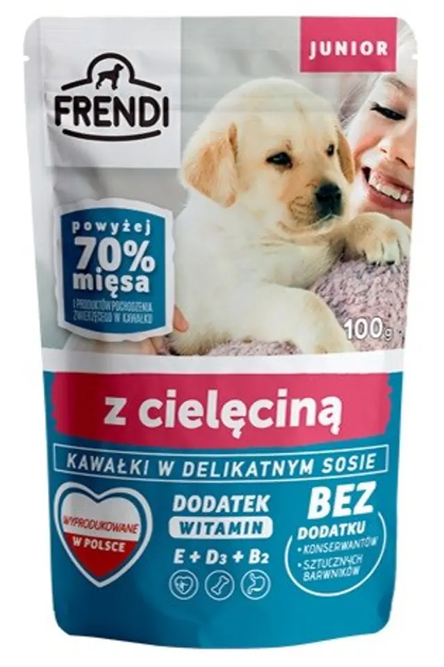 Pieces of meat with veal for dogs, especially puppies, of all breeds, served in a delicate sauce that is an invitation to a delicious meal. As much as 70% of meat and animal products in a piece! Without preservatives and artificial colors, but rich in vitamins and minerals.