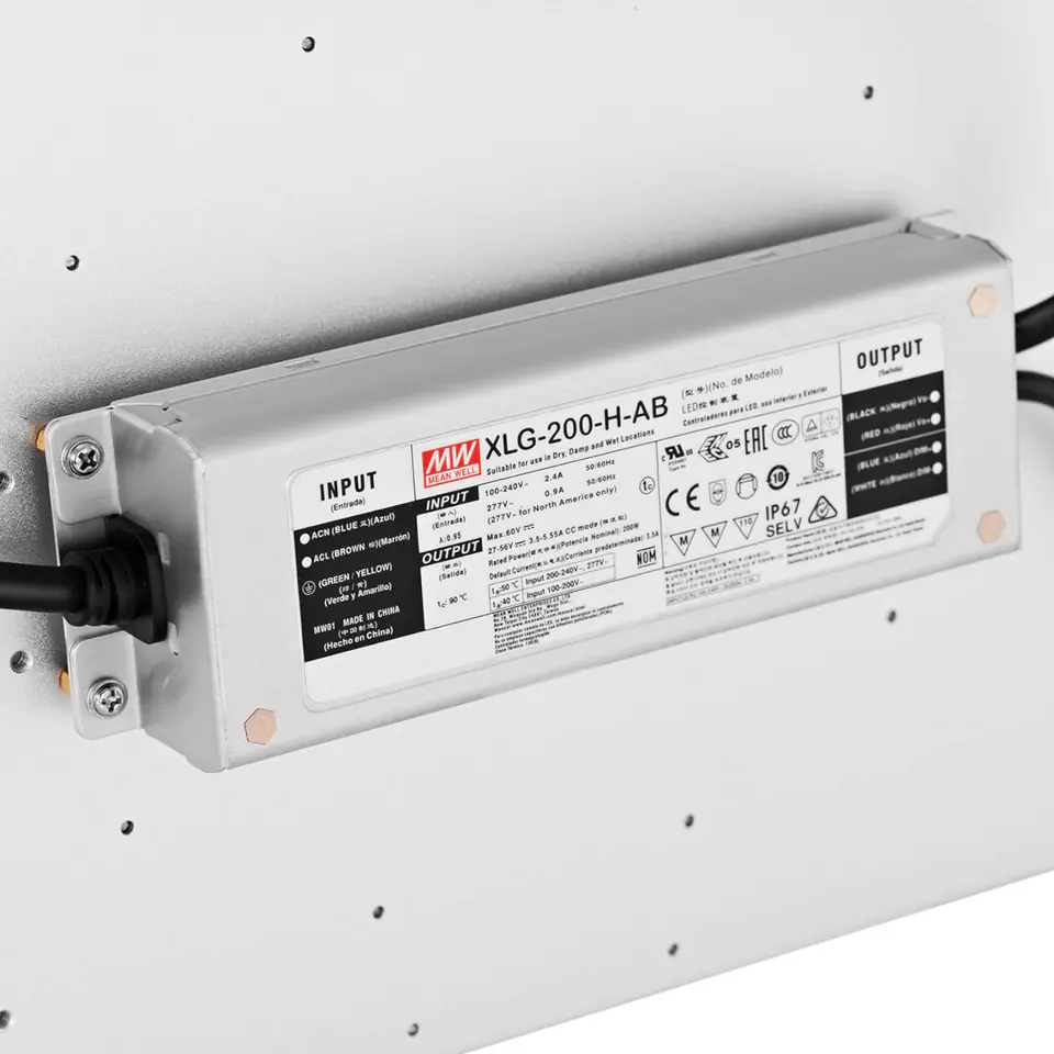 The LED panel has dimensions of 720 x 600 x 60 mm. It is equipped with 1404 Samsung LEDs producing full-spectrum light. The lamp life is up to 50000 hours of operation.