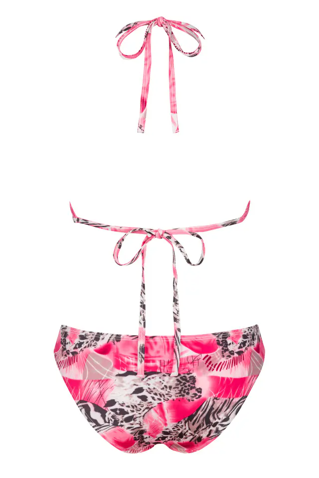 Strój kapielowy dwuczęściowy wiązany na szyi i na plecach.