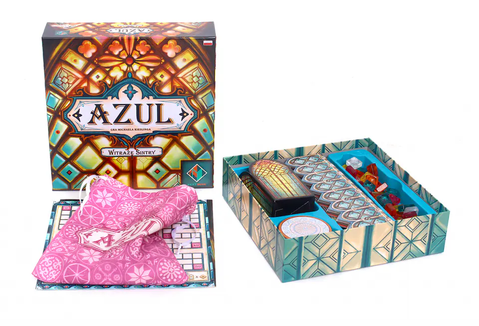 In the game Azul: Stained glass windows Sintry you will acquire colorful glass panes from the suppliers and create stained glass windows with which you decorate the palace windows. For 6 rounds you will earn points for the well-thought-out placement of stained glass, keeping in mind that the precious material is delicate and can easily break.