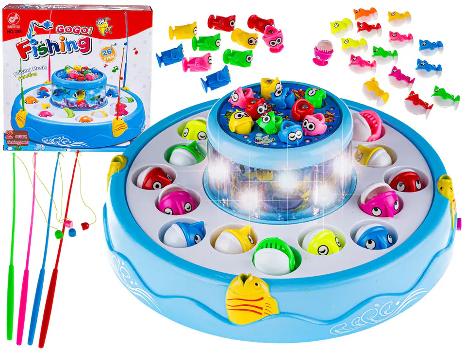 Choose your favorite rod color and launch the toy. The lakes will begin to rotate in opposite directions, and with them the fish. Every now and then every fish emerges from the water – quickly grab it on a fishing rod! The winner is the one who catches more fish - and this is sometimes quite an art ...