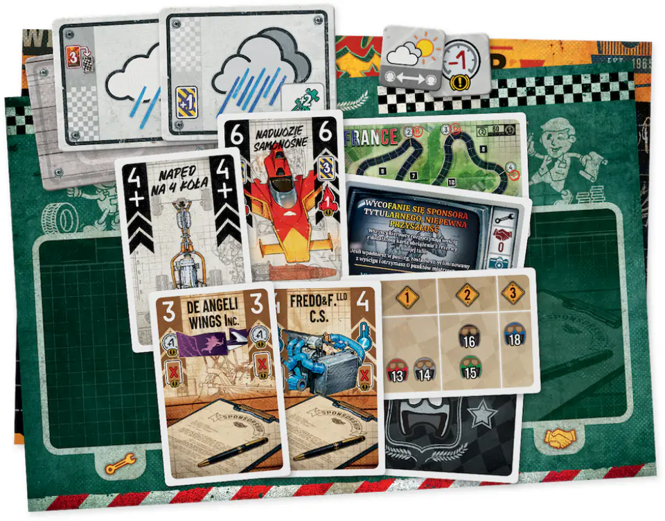 Turbo is an exciting board game that will transport you to the driver's seat participating in the chaotic races of the 1960s. Its main mechanism is simple and intuitive card management. Selecting the right upgrades will allow your racer to enter the corners better, as well as ensuring that you stay cool and maintain the highest possible speed. Ultimately, however, it all depends on your skills!