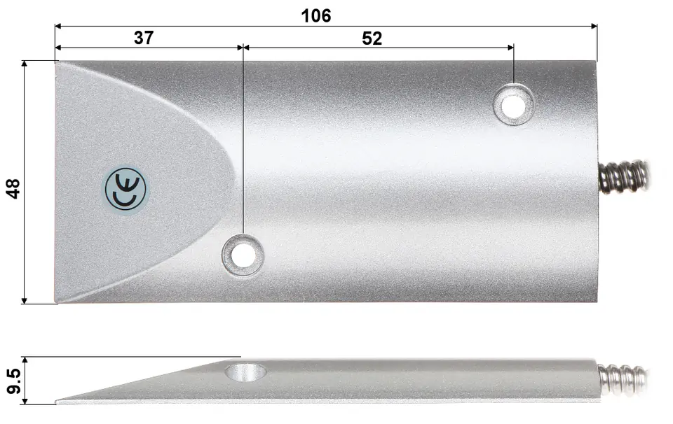 Dimensions::106 x 48 x 9.5 mm - Reed switch 106 x 15.5 x 15.2 mm - Magnet