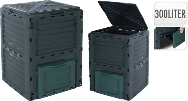 Organic waste box composter 300 l gray Composting is a natural process in which, through microbiological action, organic matter is decomposed, obtaining a fertilizer suitable for use in the garden and orchard. A large plastic composter will hold the organic waste that is generated in your household. The opening lid on the top makes it easy to access the contents. the composter does not have a bottom, which provides the waste with direct contact with the soil. Specification: capacity: 300 l dimensions of the folded composter: 83 cm x 61 cm x 11 cm, dimensions of the unfolded composter: 61 cm x 61cm x 83 cm door at the bottom for easy emptying of the composter.