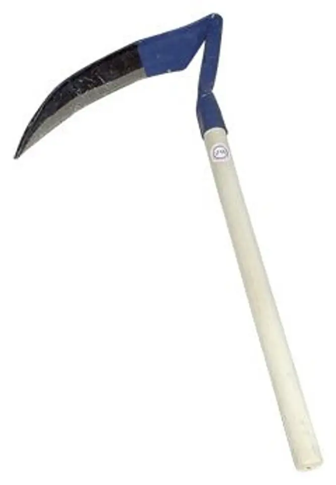 This scythe is mounted on a round shaft with a length of 0.5 m.