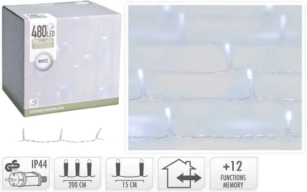 Garland curtain external/internal 480 LED cold white 225x300 cm 12 programs