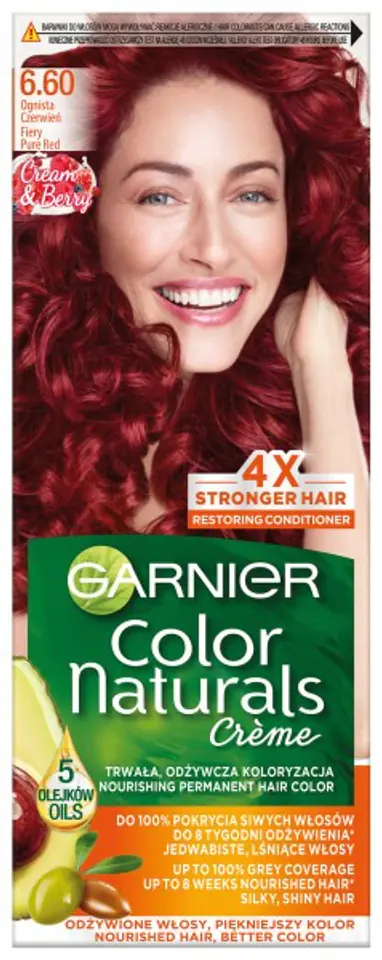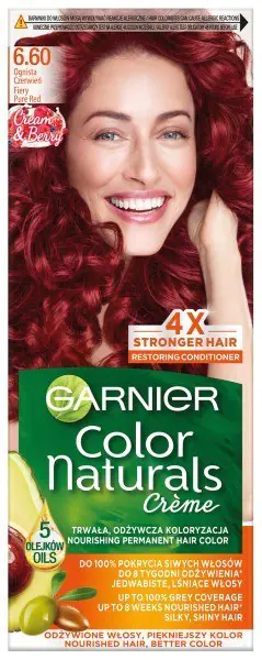 The formula of Garnier Color Naturals coloring cream enriched with olive oil penetrates into the inside of the hair to bring out a long-lasting color with shiny reflections and provide 100% coverage of gray hair. The creamy formula with 3 oils nourishes and smoothes the hair fiber: nourished hair is elastic and soft to the touch.