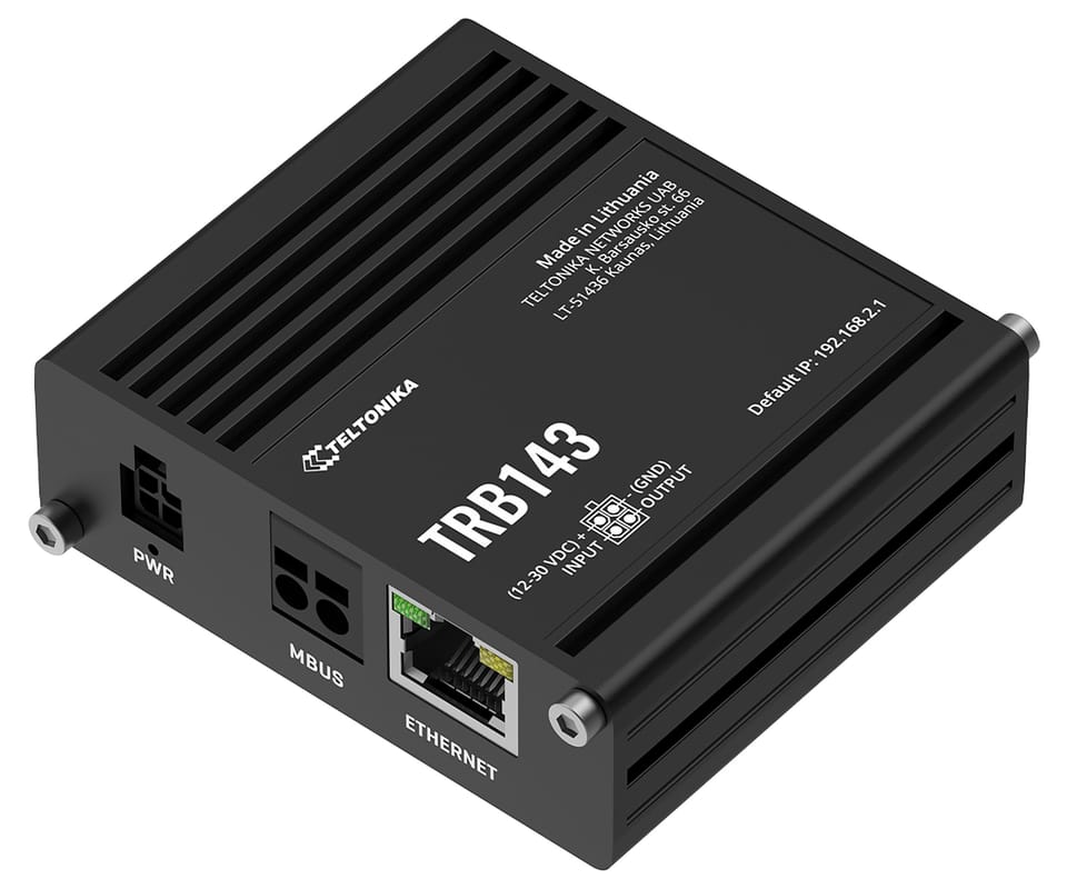 The industrial gateway has been designed specifically for telemetry and media monitoring applications. It is equipped with an M-Bus interface, cellular connectivity, one Gigabit Ethernet port and a pair of digital I/O, making it easily applicable to countless environmental monitoring scenarios. Remote monitoring and configuration is easy and secure with software-based security features such as pre-configured Firewall and Open VPN, as well as compatibility with FOTA, SMS control and Teltoni-ka Networks' own remote management system.